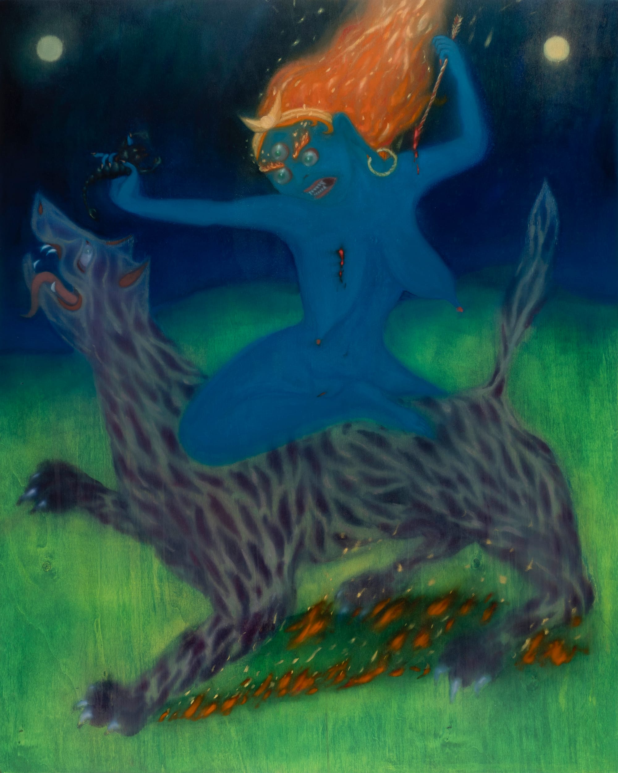 Ардын үлгэр, домогт өгүүлэгддэг мангас А.Жавхлангийн эцэг эх, өвөө эмээгийн ярьдаг байсан хууч ярианд байнга гардаг байж. Үзэсгэлэнд зориулан А.Жавхлан уран зураг, видео, монументаль ханын зураг зэргээс бүрдсэн хэд хэдэн танхим дамнасан инсталляц бүтээсэн байна.