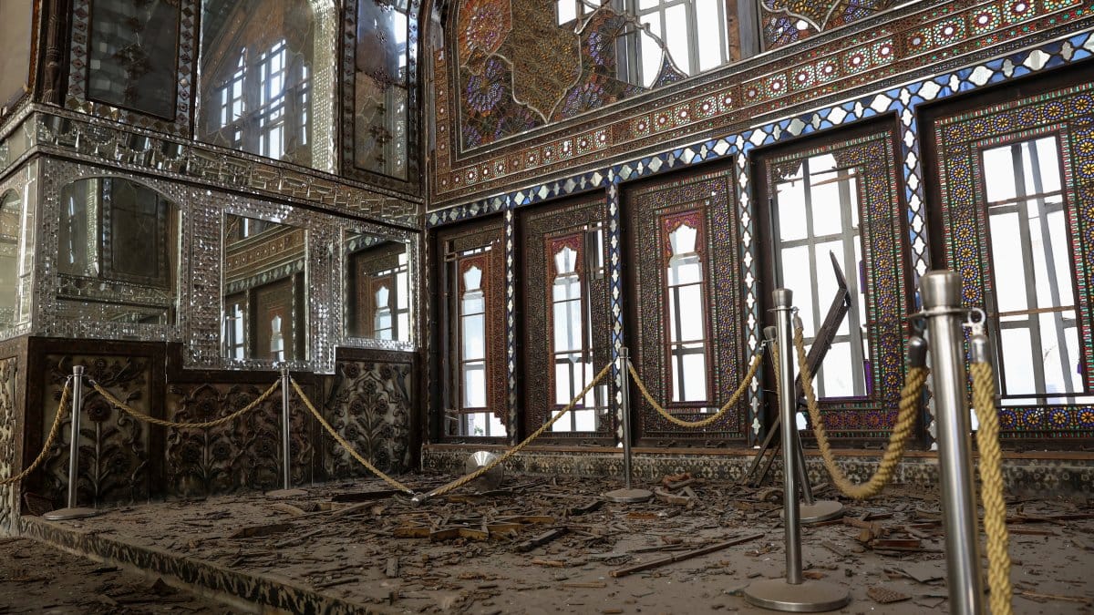 Орон нутгийн хэвлэлүүдэд нийтлэгдсэн зургуудаас ордны таних тэмдэг болсон толь болон шилэн чимэглэлүүд гэмтсэн харагдаж байна. Эдгээр толин чимэглэлүүд нь 19-р зуунаас улбаатай юм. Голестан цогцолбор музей нь найман ордон болон цэцэрлэгт хүрээлэнгээс бүрддэг бөгөөд өдгөө нурангиар дүүрч, “орси” нэртэй цонхнууд нь хагарч, модон хаалганууд мөн гэмтсэн байна.